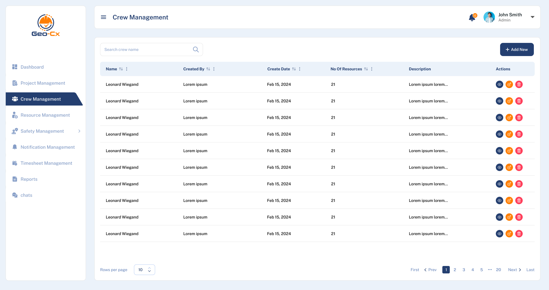 This interface is designed to efficiently manage and oversee multiple crews, providing essential tools for organization and access to crew details swiftly. If you need to add, modify, or delete crew information, you can do so through the actions column corresponding to each crew.