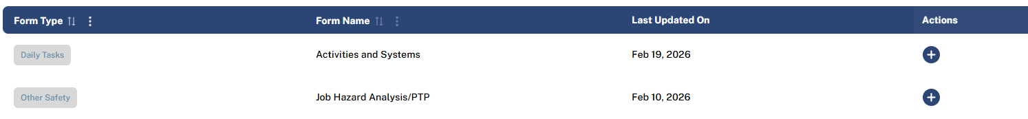 • This will display all available forms associated with the selected project