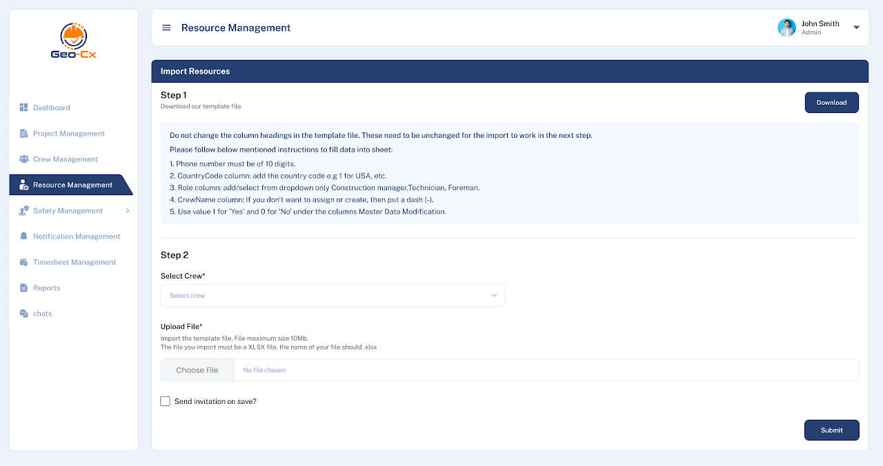 Option to Send Invitations: Check “Send invitation on save?” if you want to send email invitations to all imported resources.
